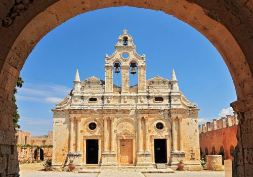 The Arkadi Monastery, located about 23 kilometers southeast of Rethymno, is one of the most significant historical and religious monuments in Crete. Perched on a plateau at 500 meters above sea level, the monastery is renowned for its striking 16th-century Venetian-Baroque architecture and its pivotal role in the island’s struggle for independence from Ottoman rule. In 1866, it became a symbol of Cretan resistance when hundreds of locals, including women and children, chose to die rather than surrender, igniting barrels of gunpowder during a siege by Ottoman forces. This act of defiance drew international attention and remains a powerful testament to Cretan bravery. Today, visitors can explore the monastery’s historic church, museum, and preserved buildings while reflecting on its profound legacy of sacrifice and freedom.